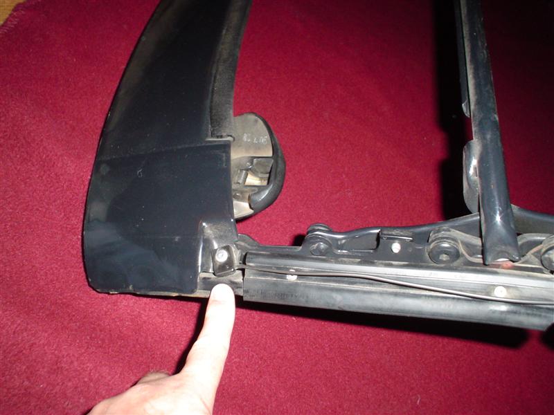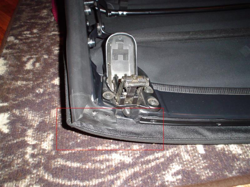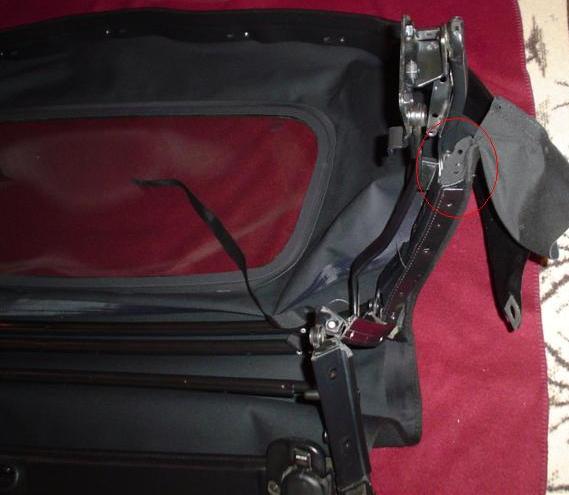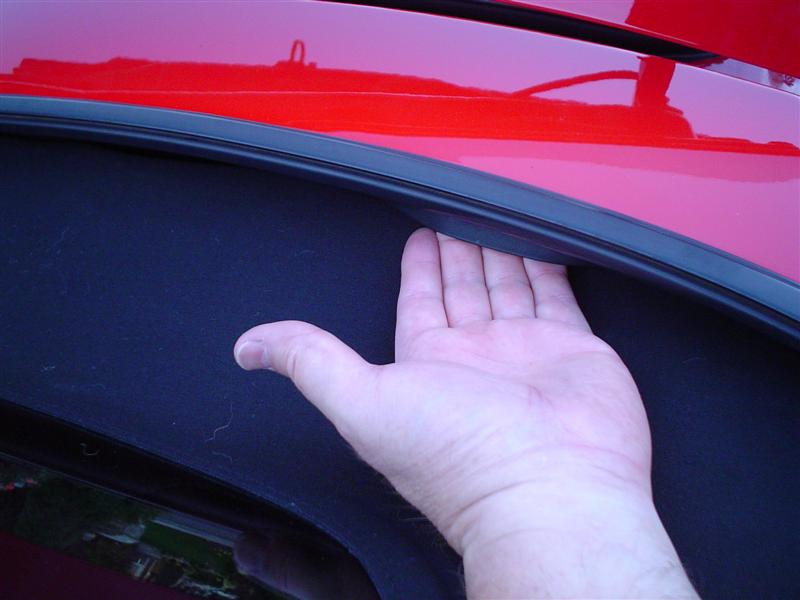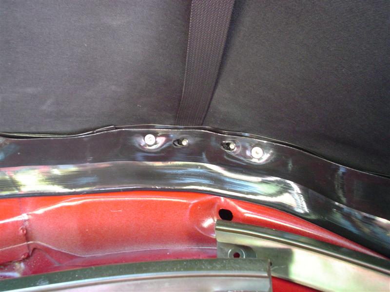 Where the top disappears below the body at the back, behind the back window, the top is attached