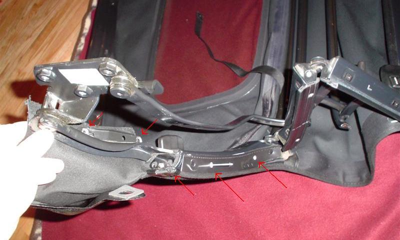 Removing the convertible top fabric from the frame