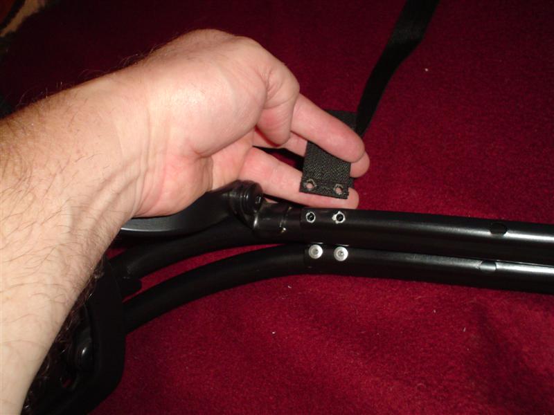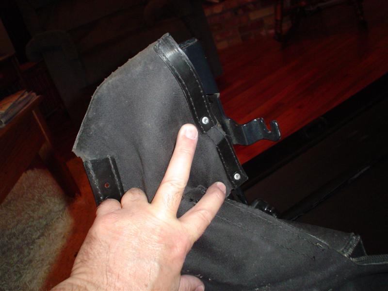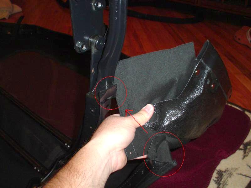 There is a flap of fabric that goes under the #1 silver frame and rubber.