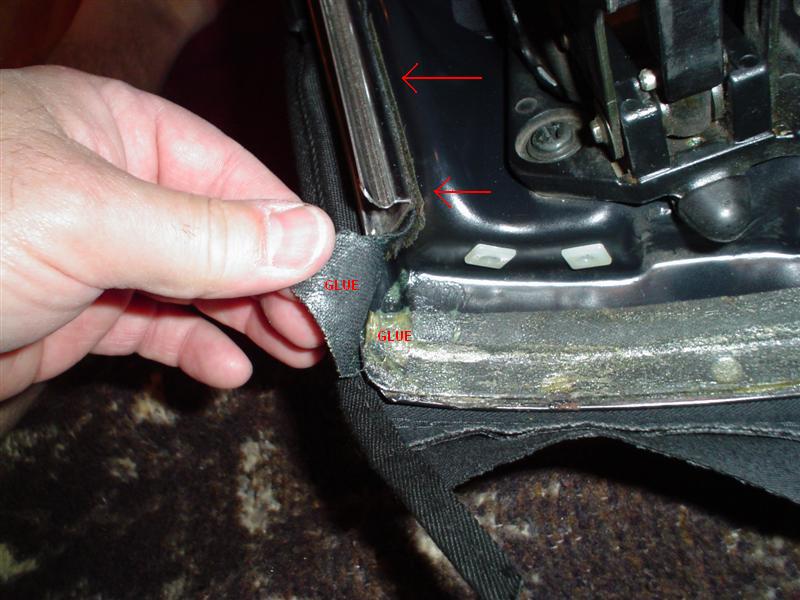 Removing these 2 rivets will allow you to pull the cloth away from the area around the push-type fasteners.
