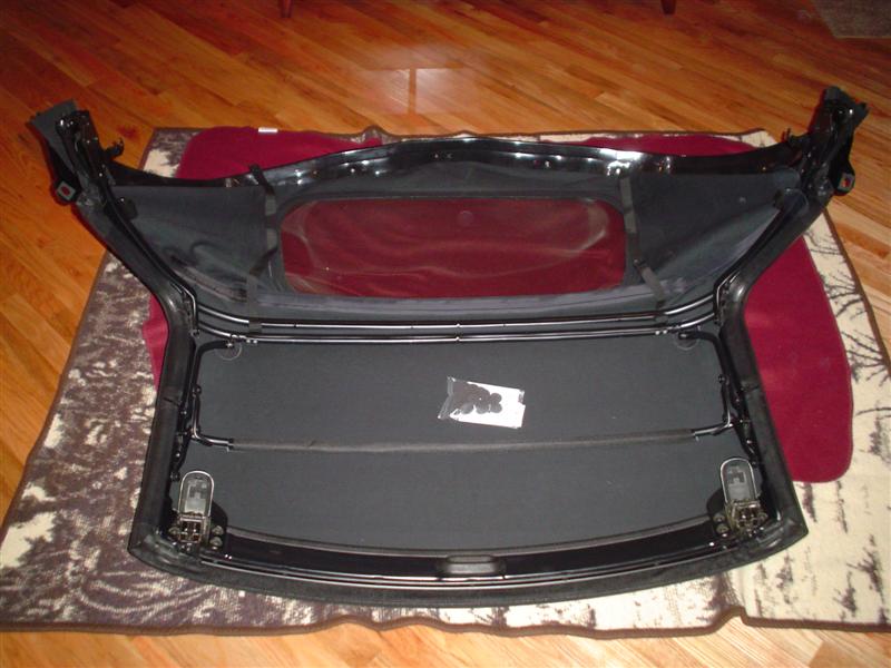 Remove the 3 hinge plate bolts on each side and carefully lift the convertible top from the car.