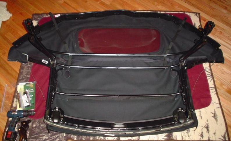 Replacing the convertible top fabric onto the frame