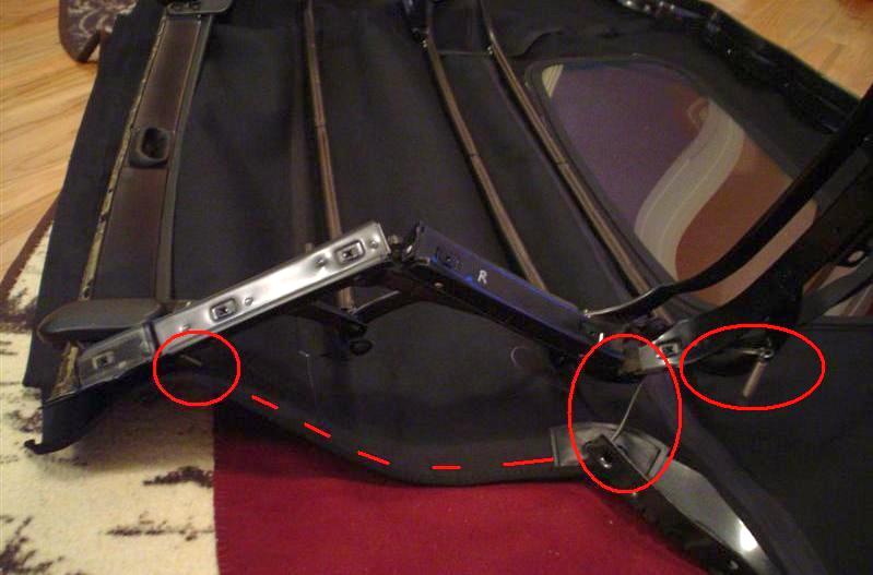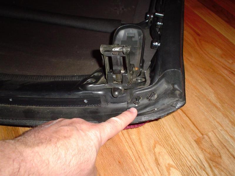 The 3 bolts on each side that hold the convertible frame are visible as well.