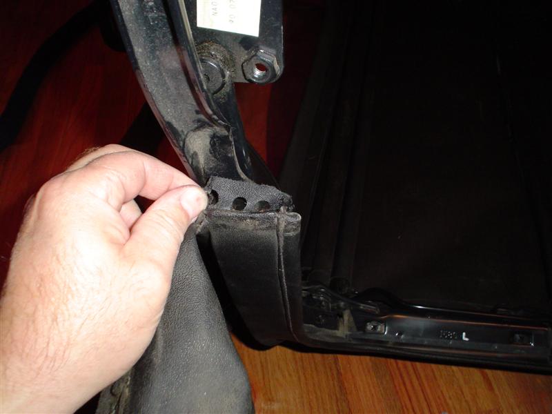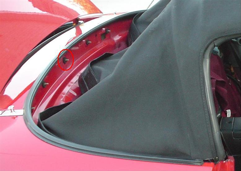 Also, install 2 rivets to attach the material just behind the bottom of the b-pillar.