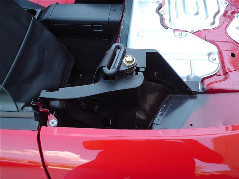 While off the car, extend and lock the top as if the top were in the "up" position.