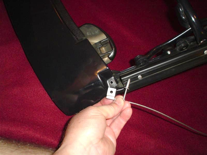 Thread the spring and wire thru the hole in the frame and attach the spring to the screw on the frame.