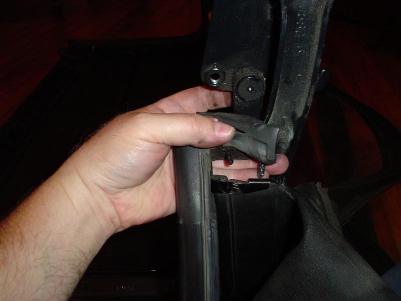 I then removed the seat belt tower covers by removing the weather stripping that runs along the back of the door and snapping off
