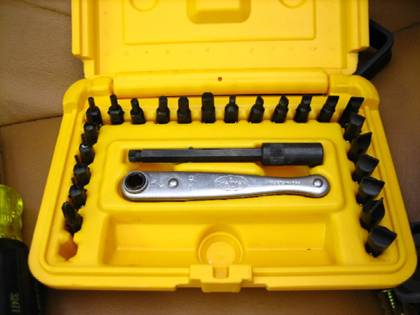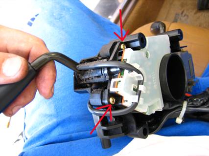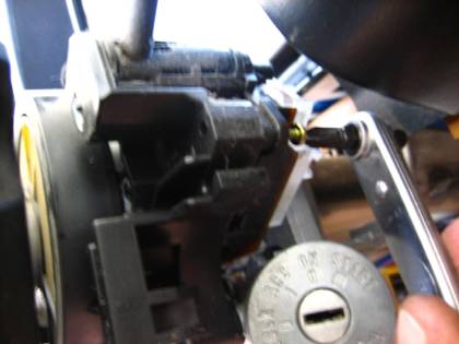 trim, and use the ratcheting tool to loosen those two screws as shown (yes –