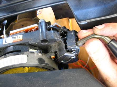 possible pinching or binding when the steering wheel is operated. You will need to cut the white harness off