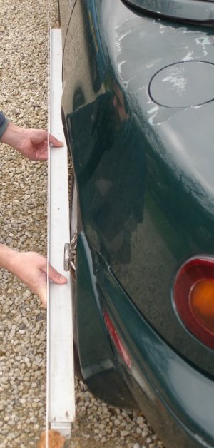 Can you measure and check 4 wheel alignment on a "5" using string, straight edge, plumb bob, spirit level and extending rule etc. Those nay sayers should note that motorbike frame re-aligners use a jig, and tape measure ;-). Any Freemasons among us will know little more was used to build Europe's great cathedrals, or to navigate the world! So why do people think the idea totally foreign when it comes to a simple car geometry. The MX-5 is not a hand crafted car like say the Jensen Interceptor, they are computer designed, the monocoque and suspension components are jigged, assembled and spot welded by robots, to within fractions of a millimetre! Manufacturers can not afford for things not to line up!
