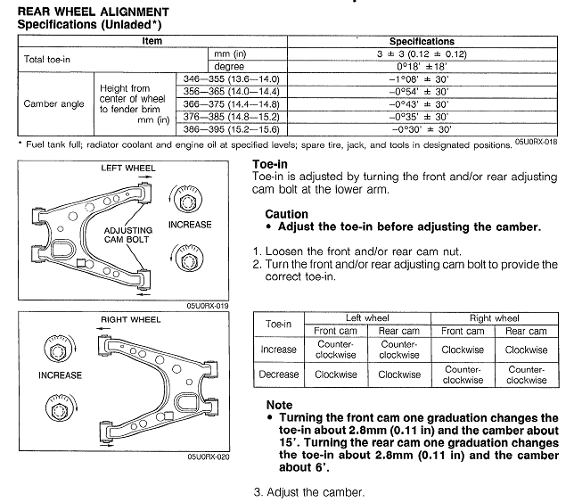 If any modifications are made to the "5" suspension, (see below!) such as replacement springs, dampers, bushes, track rod ends etc., alignment can be checked (and can if necessary be adjusted) using simple tools. Mazda tolerances are pretty wide, so getting within spec. is not difficult. Playing with rear "toe" and camber settings can be great fun! Obviously this web page is only my opinion, but I think all the links give great (independent) understanding in the subject Enjoy!