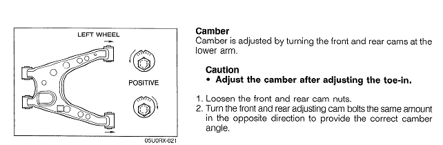 Front wishbone adjustment is for camber