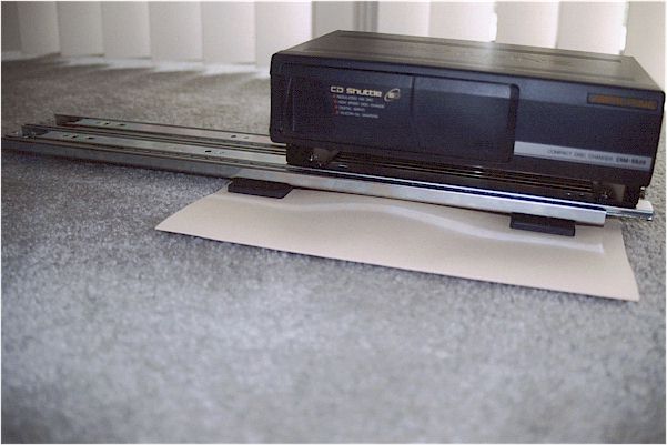 Build the changer and slide assembly in a suitable area of your home. The middle of the living room is not recommended. This "dry fit" makes sure all the pieces fit. Better to find potential problems now than when you've got your head and shoulders stuck in the trunk of the Miata.