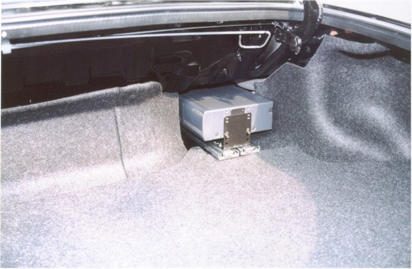 Place the changer and rail assembly in the car, making sure the back of the rails are far enough into the space that the entire assembly fits into the well. The visible end of the changer should be approximately flush with the front wall of the trunk and the changer shouldn't rub against the car anywhere.