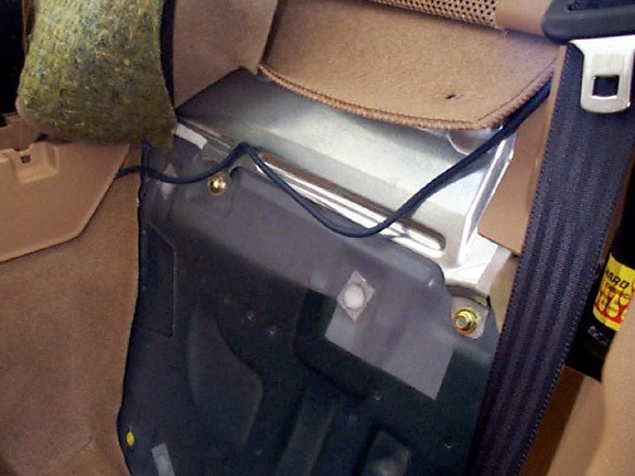 13. Re-install the carpet and cut holes for the Floor Mounting Plate Bolts to stick through.