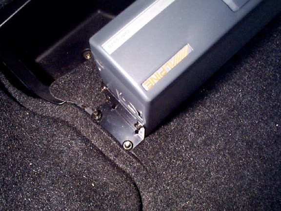 NOTE: It is NOT necessary to remove the center console to get the Alpine CD cable from the trunk to a place under the dash. You may be able to work the cable under and along the console from the back to the front without removing the five screws depending on how tight it is along the edge.