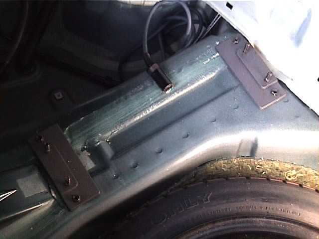 11. Screw the Floor Mounting Plates to the trunk floor with the four Metal Screws provided. I used a ratchet instead of a screw driver.