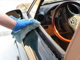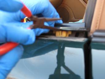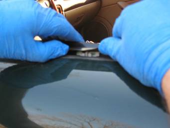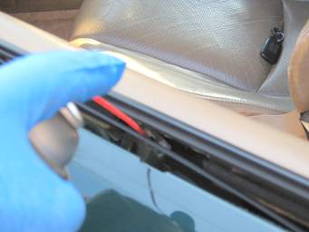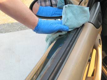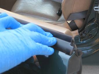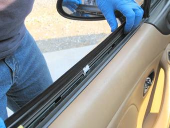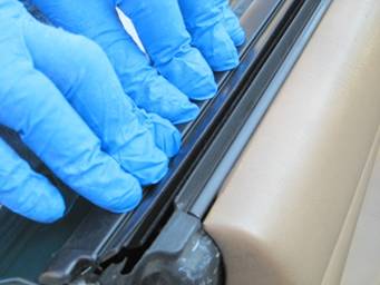 Grab your new belt line molding and make sure there’s no debris on the felt, which could scratch your window.