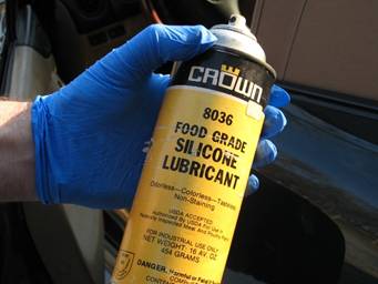 Now’s a good opportunity to spray a little White Lithium Grease in the window mechanism channels, and a little silicon lube in the weather strip slot at the front of the window.