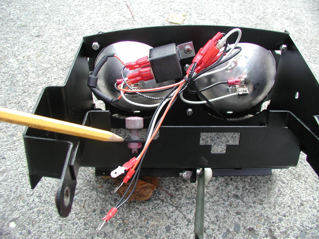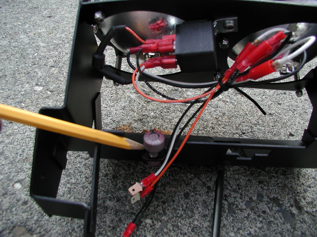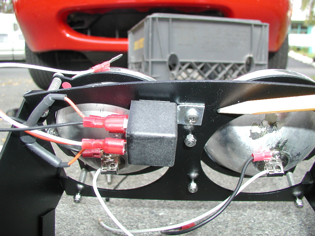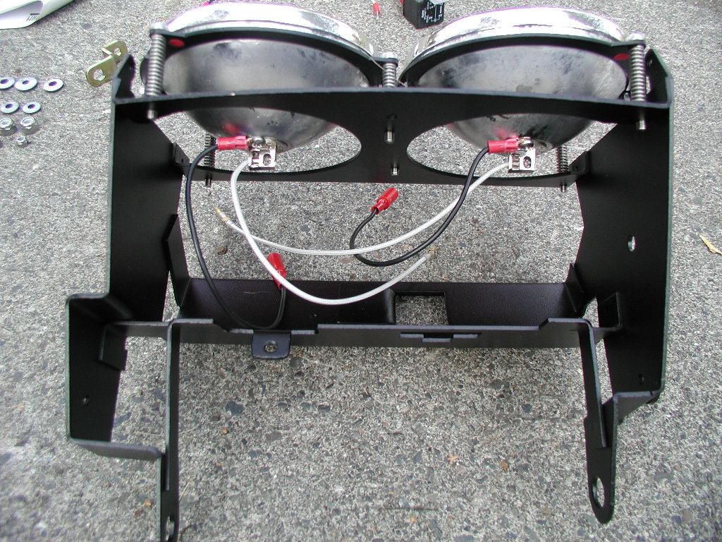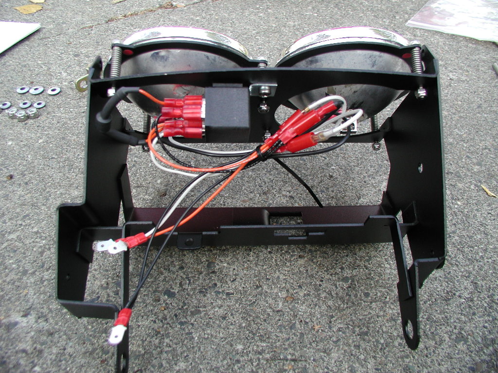 Black to black, relay white to low beam white, relay orange to high beam white. (In case you didn't know, the lamp that will be closest to the outside fender of the car is supposed to be your low beam.)