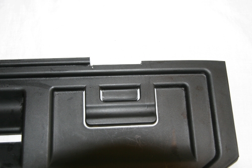The final piece of plastic surgery is the removal of a section of the plastic hinge material that will allow this piece to act as a spacer for the new hinge. I replace the old section of the hinge back on the center console and marked a section that matched the cutout in the photo above. Again using the utility knife I removed a section of the old hinge to match the hinge cutout (photo below).