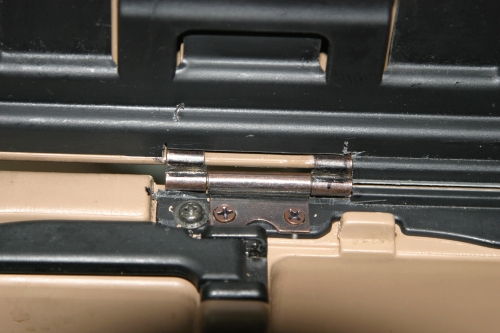 On the underside of the top cut out a corresponding slot that will allow the two pieces to clip back together with the without interfering with the hinge (Photos below).