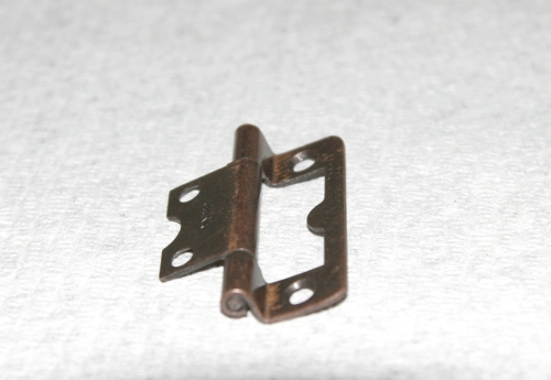 1. The first step in the hinge modification is to reverse the center portion of the hinge by driving out the hinge pin and flipping over the center part of the hinge and re-inserting the Pin. The next step of the hinge modification is to place the larger outside portion of the hinge in a vice and put a 90 degree bend in the hinge approximately 1/8" below the hinge pin barrel. It is important to make this bend in the correct direction so that the hinge ends up looking like the one in the photo below. I used a small hammer to gently strike the hinge barrel while in the vice to get the 90 degree bend.