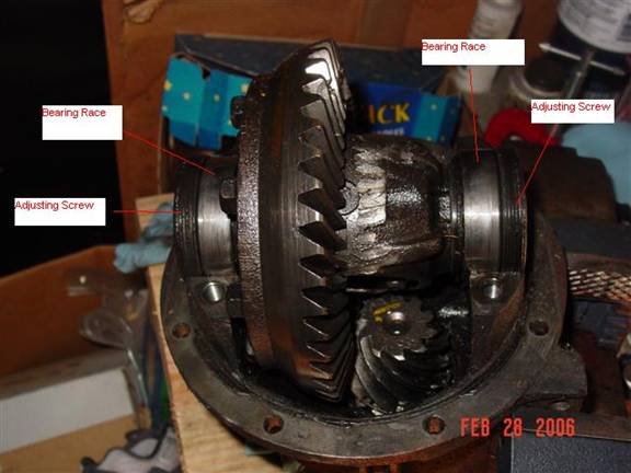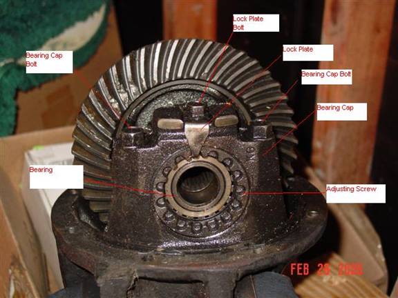 Next remove the lock plate from both sides then remove the bearing caps and adjusting screws. STOP!! At this point mark the bearing races so you know which goes where, do NOT mix them up.