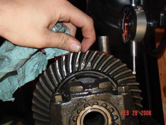 Go ahead and measure at the four positions you had painted on the ring gear previously. All the values should be in this range