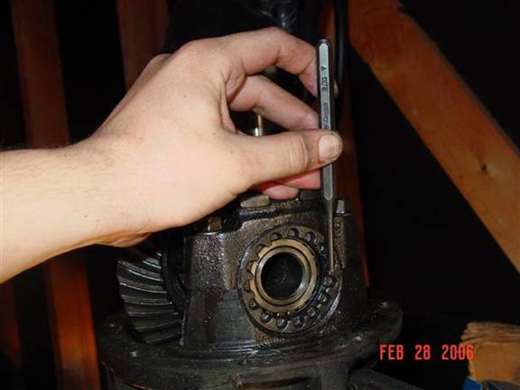 Note: It has been pointed out that you might want to measure the backlash before disassembly, see page 6 for measuring backlash. This way you will be assured a noise free rear end if it is set the same as before. I have always just set it to within spec and haven’t had a problem but it couldn’t hurt.