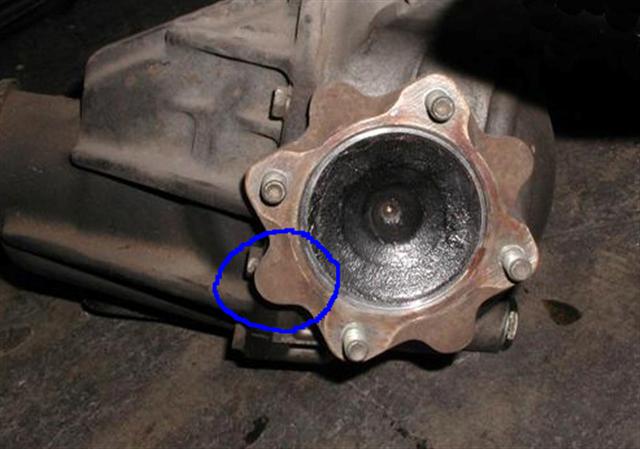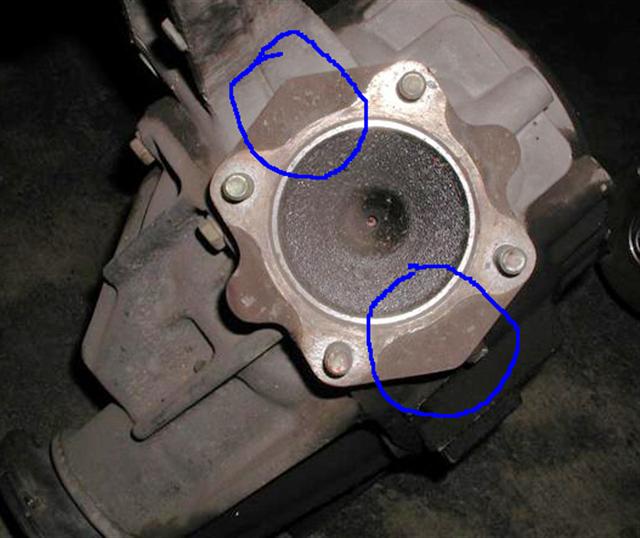 1.6 liter VLSD with right side stub shaft flange ears circled.