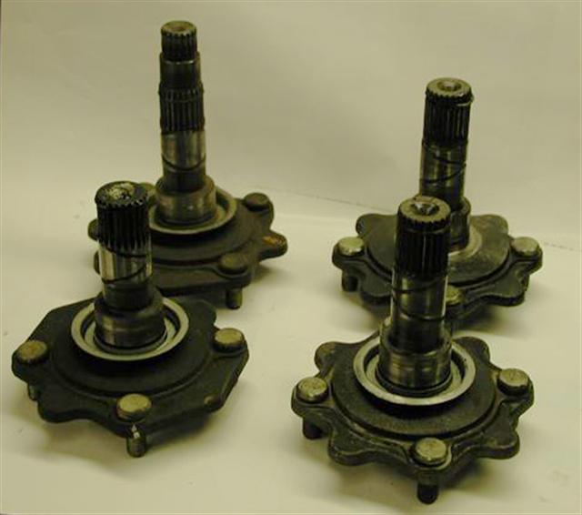 All 1.6 liter stub shafts. The two on the left are a VLSD set. Note the right side stub shaft (back left in picture) is the one with two different sized splines. On the right side of the picture are the two matching stub shaft of an open differential.