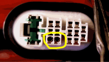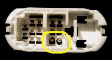4. Looking closely at both halves of the connector, you will see two unused spaces. This is where we will be installing the contacts for our wires. Since it is impossible to find the OEM contacts, we will use Molex contacts available at Radio Shack. You cant buy the contacts separately, but you can get all you need with the 2 position Molex connector for $0.99. The Radio Shack PN is 274-222. Below are pictures of both halves of the connector with the new contacts installed: