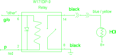 Simply put the "HOLD" light in the instrument cluster is ground(-ve) switched. "HOLD" lights up when it gets a ground connection via the 3rd pin (marked 1J on Factory wiring diagram). Again, this ground point can be anywhere on the car body. The Reed relay acts a switch to close/open this ground connection circuit for the "HOLD" light.
