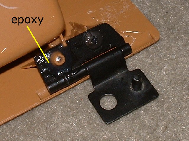 I then set the hinge in place, settling it into the epoxy. I "screwed"