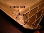 First, clean the mating edges of the broken post with isopropyl (rubbing)