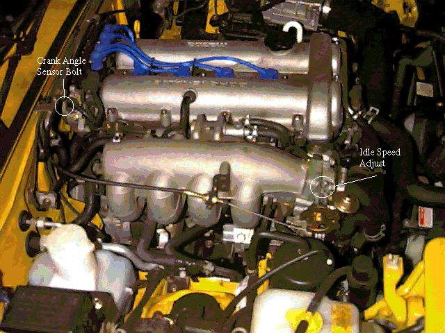 Note: The timing on the '99 Miata is not settable. The '99 engine is designed with variable timing and a knock sensor which will automatically retard the timing if the engine pings. However, someone has found a method to change the '99 timing (although we don't recommend it and we have no performance data to back it up.) Read about it here.