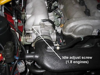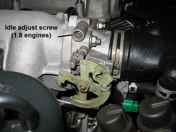 Many owners have complained about stalling or being on the verge of stalling after stopping at a light. The most common cause seems to be the idle speed. The Miata idle speed is specified as 850 ±50 RPM. If you have a tendancy to stall, try adjusting the idle speed to the maximum of the range or 900 RPM. Adjust the idle speed screw.