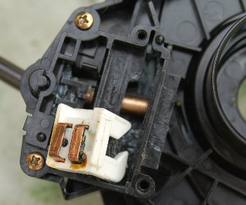A check of the 1999 Miata Workshop Manual showed that the windshield wiper control circuit is part of the light/signal/wiper combination switch. The instructions to remove the combination switch call for removal of the steering wheel, which I wanted to avoid since I have a lot of respect for the air bag module and I didn't want to touch that. I also didn't want to experiment and potentially destroy the wiper control circuit in my car, so I bought a used combination switch from a wrecker.