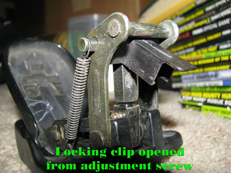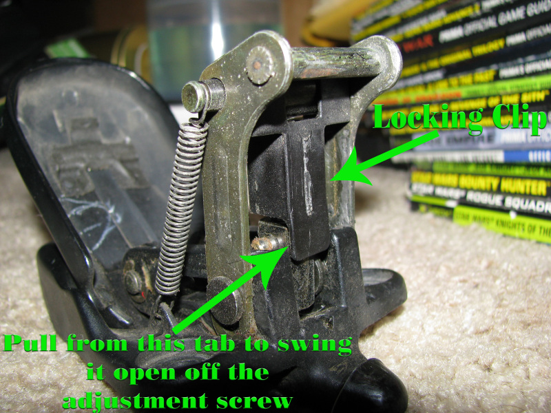 Notice the adjustment screw is secured in place with a locking clip (see pic) to keep the adjustment screw from readjusting itself.