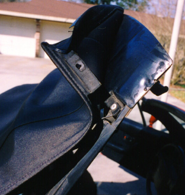 You can also see how the end of the OEM top has a 'pocket' that slides over the metal top frame which neither the Robbins or the JC Whitney tops had. (and I wish they did)
