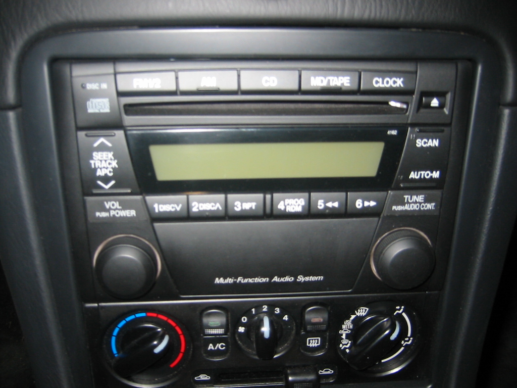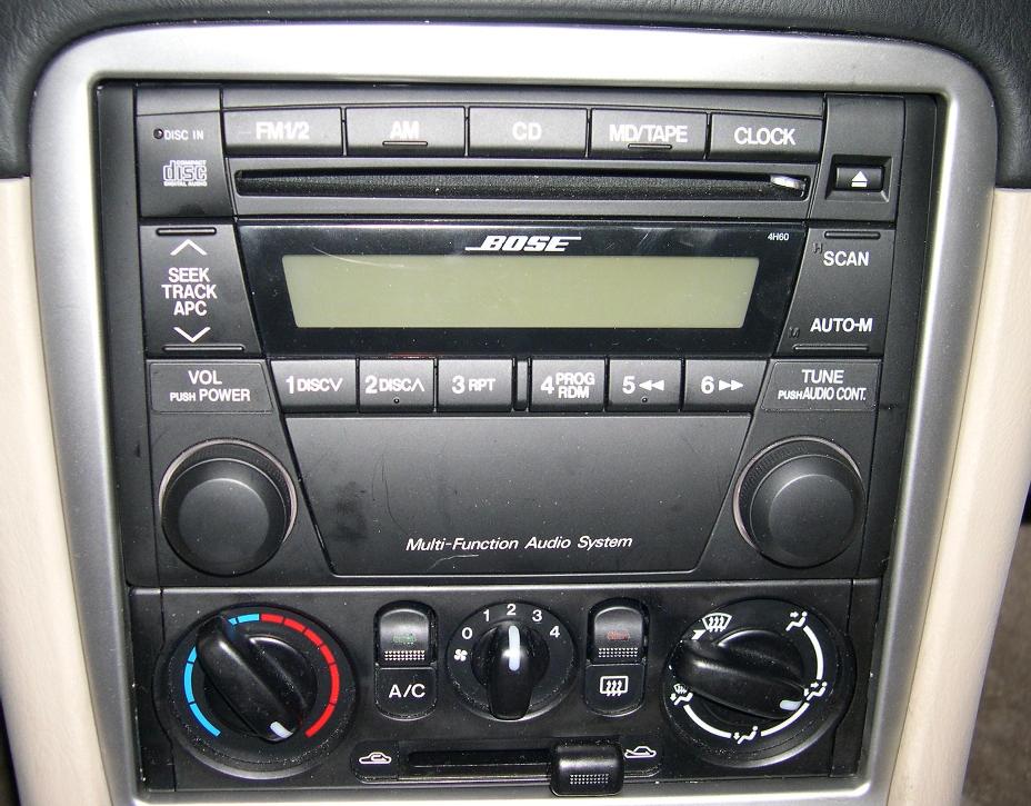 Availability: All 2001, 2002, and 2003 base model cars came with this unit standard including the 2003 Shinsen Version. Door tweeters are added with the Convenience Package (and on the Shinsen), and an in-dash 6-disc CD Changer, Cassette Player, or MiniDisc player are dealer-installed options. Note that the 2003 Club Sport package does not include a sound system at all.