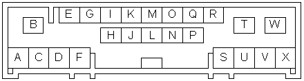 PIN APPLICATION COLOR A LF+ Yellow/Red B Bat (+12V) Blue/Red C LF- Yellow/Black D RF+ Yellow/Green E Pulsed Dimmer (TNS+) Red/Black F RF- Green G Inverted Dimming Grey/Red H PWR Ant Grey/Black I blank J blank K blank L Tele mute M blank N blank O blank P blank Q blank R IGN (+12V switched) Blue/Black S LR+ T blank U LR- V RR+ W Ground Black X RR-