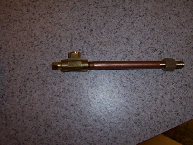 I purchased a 4” 1/8NPT Male x 1/8NPT Male nipple along with a 1/8NPT T fitting (all available at your big box home improvement store). I used the T fitting because I wasn’t sure whether it would be easier to come straight out or straight down from the top and it gave me both options. I also purchase a 1/8NPT block off plug. An added advantage of the T fitting is that it has flats on the side, making it easier to screw into the block and could even be tightened with a wrench if you thought it necessary (it’s not – you may leak a drop or two of oil but it’s not on there that long). This sub-assembly looks like this: