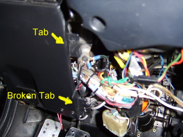The metal panel under the steering wheel that covers the steering column has one main failure mode -- the lower plastic tabs (that are part of the dashboard) often break off. This makes it difficult to get the cover to stay in place. There are a couple solutions to this that use common shop parts.