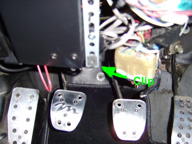 The next step is to get some U-clips and matching screws for the new bottom "tab." These again are commonly available at your local hardware store. Hold the metal cover in place and mark where you need the clips. If you're lucky, the holes in the cover will line up with the holes in the metal strips. If you're not lucky, carefully drill through the metal strip in the appropriate spot.