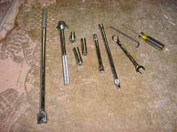 The following install uses a Flyin' Miata Sway bar, but the steps should be no different for any other brand. The day prior to installation it's probably best to make sure all bolts and nuts are loosened from any binding from rust. So get some WD40 or Liquid Wrench and spray the end links and attachments liberally. I didn't use a jack or anything, but maybe you'd want to on the rear. The bolts are pretty close to the edge of the car, so I reached them without problem.
