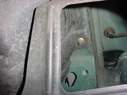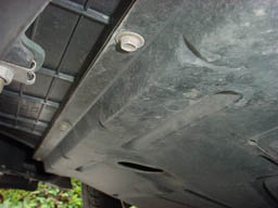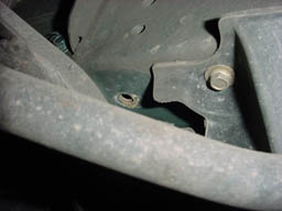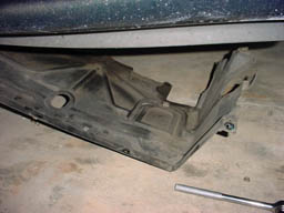 Step 6: This is a tough shot to comprehend, but there is one screw on each side again, near the ones from step 5. If you get under the car and look up towards the front of each front wheel well, you should see them. |