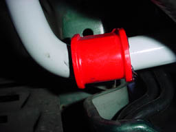 Step 16: Pop the new bushings on the bar, then apply the brackets. |