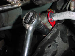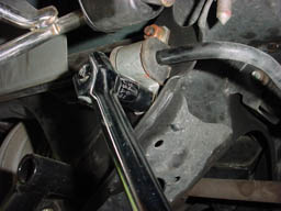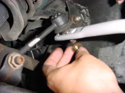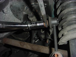 Step 9: To tighten the end links, the car must now be on the ground if it has been lifted or jacked in some way.Tighten up both end link bolts on both sides. No torque specs here again, so ask somebody. |